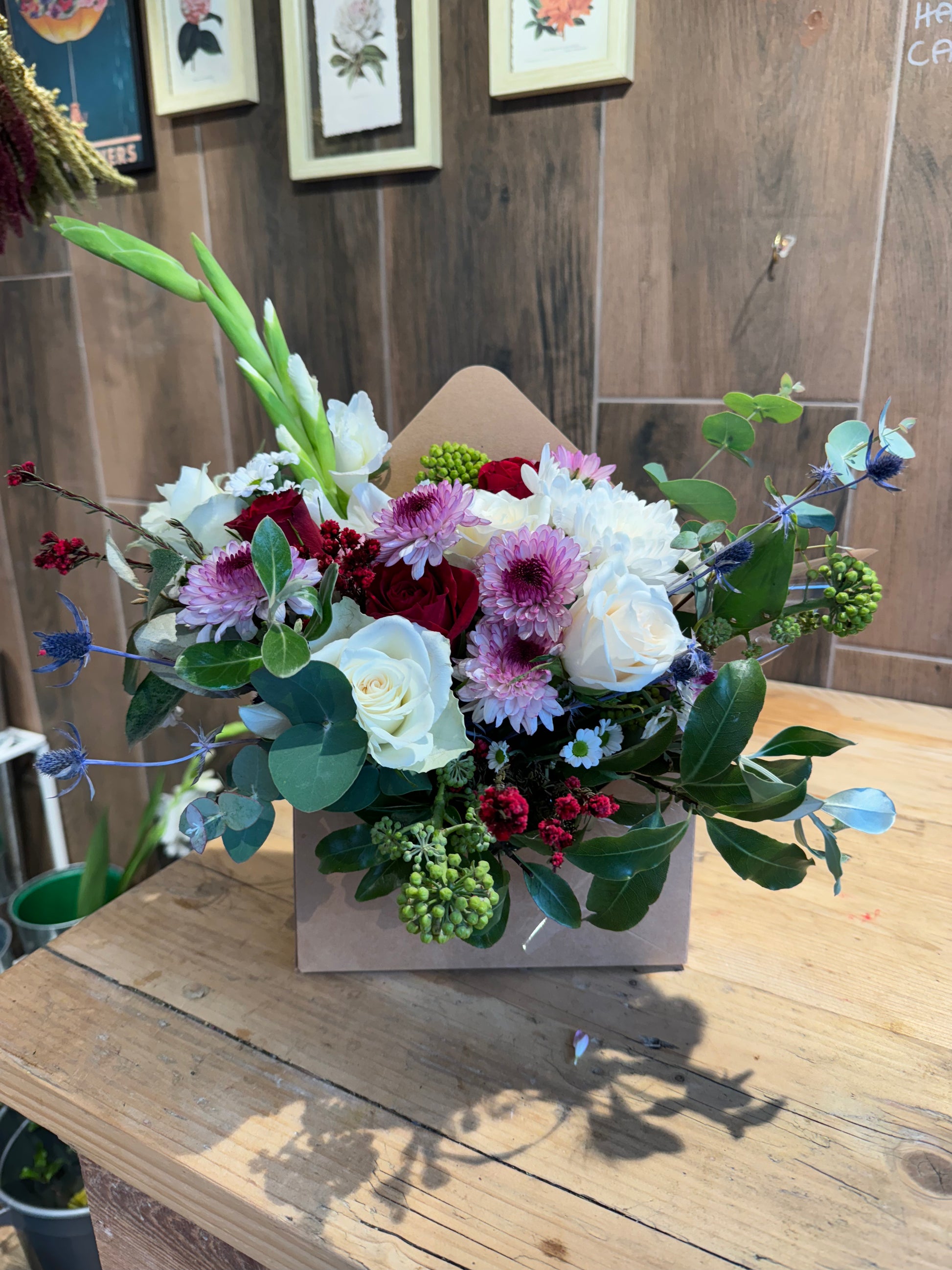 Fresh, seasonal flower arrangement in an envelope! Lovely, seasonal gift for any occasion!
